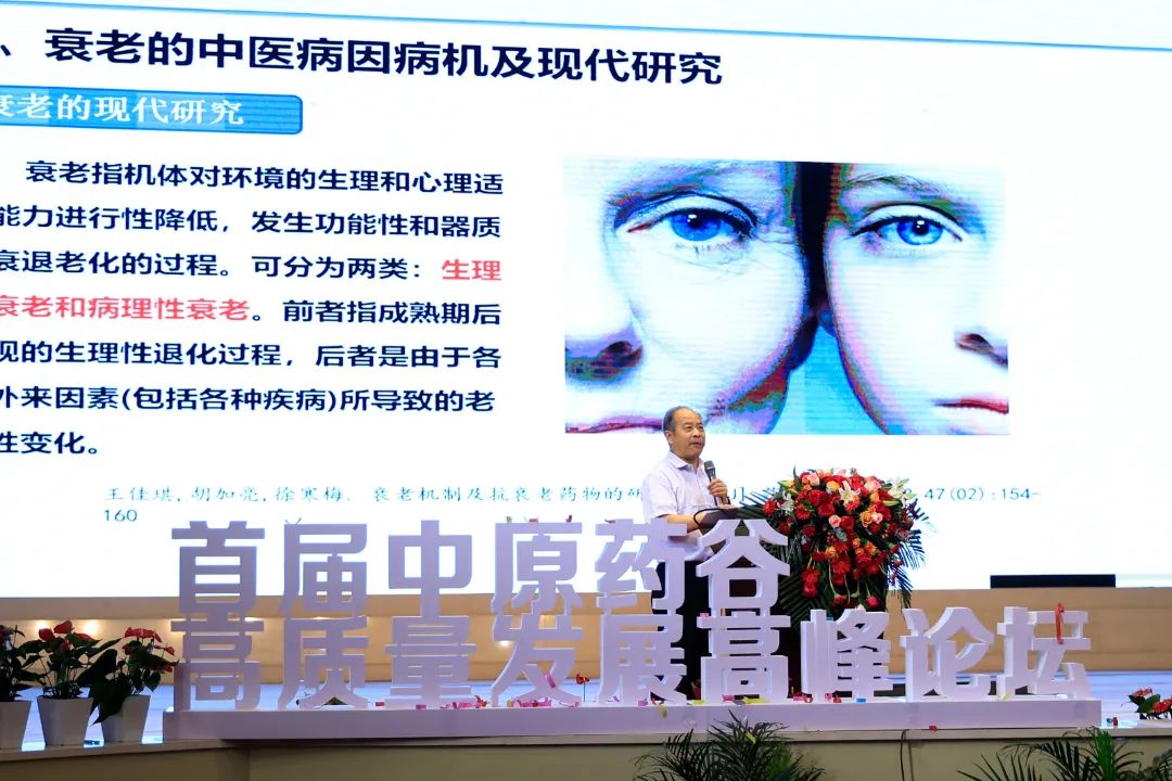 河南中醫(yī)藥大學(xué)副校長苗明三做了題為《中醫(yī)藥防治衰老與慢病》的重要講座,生動(dòng)形象的向大家闡釋了抗衰老與慢病之間的關(guān)系以及從中醫(yī)藥抗衰角度如何防治慢病。